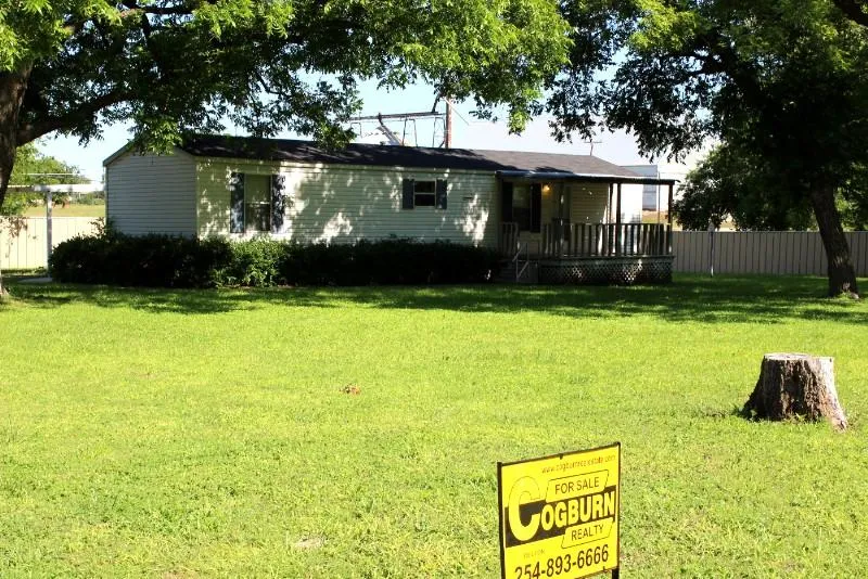 Nice 2000 model 2-1 mobile home, 728 sq. ft. living area and central air/heat, a covered front porch and cement sidewalks.