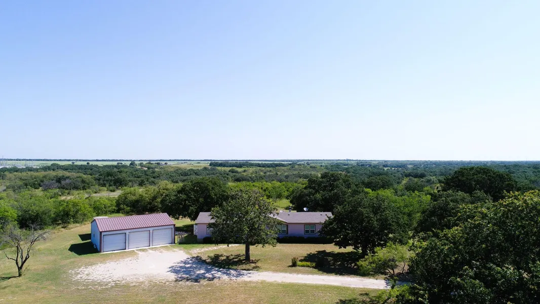 This premium manufactured home by Solitaire features granite counter tops in kitchen & bathrooms, fireplace, spacious living area, large master bed & bath, w/ 2 extra bedrooms & hall bathroom. The split living design was made for comfort & cozy living away from the bustle and bustle of city life yet centrally located for access to all of Texas. All of this is surrounded by majestic oak trees and plenty of room for hunting, horses, or just quite morning walks. The extra storage & workroom in the backyard compliments, a 30 x 36 detached garage/shop with 3 - 10 roll up, doors w/ remote door openers. Immediate possession possible upon closing & truly ready to enjoy!