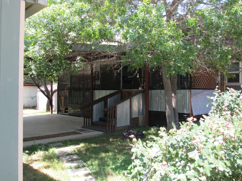 Property has 2 living facilities, 2 storage units, fenced yard and carport. The RV shed covers the main house for added shade and protection, concrete slab separating the 2 homes is fully covered to make a nice patio. The main house has a large enclosed wood deck. Large trees make for a beautiful peaceful get away.
