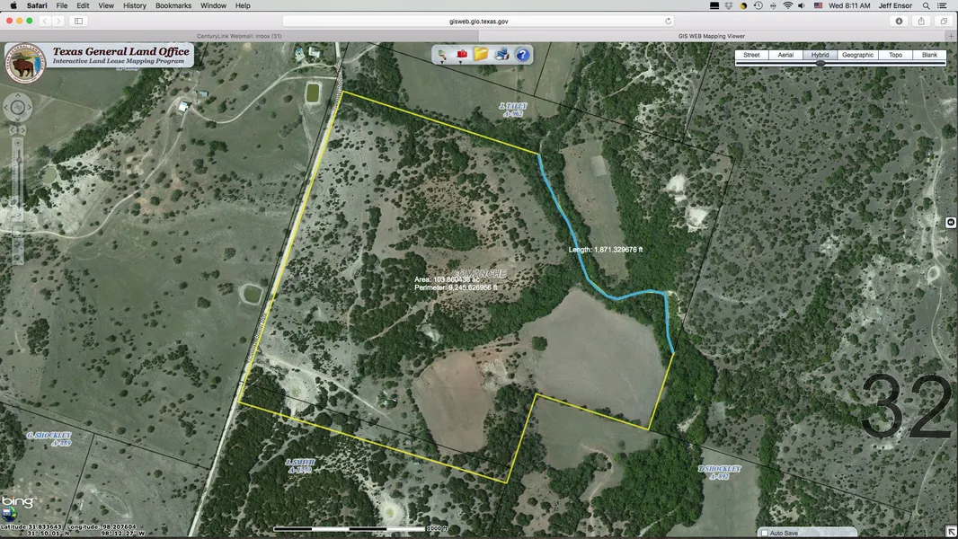The land is rolling terrain, has great views, dense and scattered tree cover, over 1,800' of Rocky Creek frontage, a wet weather creek that feeds into Rocky Creek, two seasonal ponds, and two fields for food plots. The property is know to have all kinds of wildlife including whitetail deer, hogs, turkey, bobcats, fox, coyotes, and some good fishing in the creek. The location is very secluded and well off the main roads, however, the frontage is a county maintained gravel all weathered road to ensure easy access in all weather conditions.