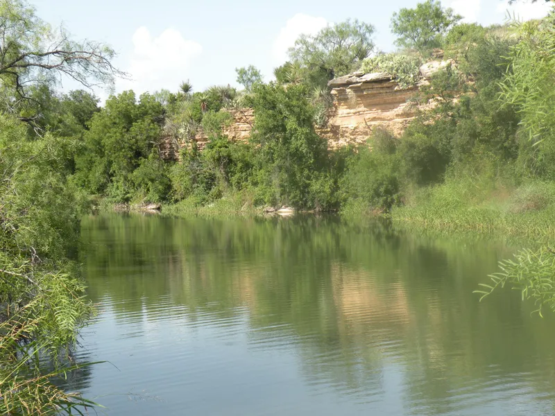 Terrain is one of the intriguing assets of this ranch. It varies from low rolling to steep high cliffs and bluffs. Most of the ranchland is well covered with a good diversity of trees and brush. 130 feet of elevation change makes some pretty attractive scenery.
