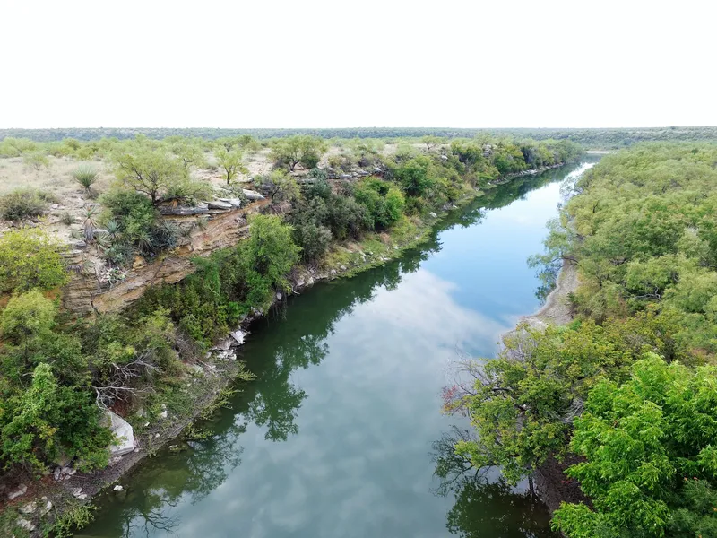 The Mustang Ranch is a beautiful 3400 +/- acre hunting ranch that has been in the same family for over 115 years. The heart of the ranch features a dammed section of the Mustang Creek creating two large bodies of water that cowboys in the open rage days knew as Blue Hole. Blue Hole totals around 5 acres and is surrounded by stunning rock cliffs with heavy cover. Water on the ranch includes two smaller tanks. Water to the house and cattle troughs has been supplied by the Millersview Dual Water Coop for many years but the owner recently drilled a new well that will supply ample water for all the ranches needs. There is heavy cover on most of the ranch, great for the abundant wildlife which includes whitetail, blackbuck, waterfowl, quail, dove and turkey. The home sight includes a 3000 sq ft ranch house, 1100 sq ft guest house, a three car garage with living quarters, (5 bedrooms total and 4.5 baths) a deer processing shop, two barns and a corral with a 20,000 lb scale. The ranch also has very good net wire boarder fencing and cross fencing. 50% of the minerals will convey with an acceptable offer. Other negotiable items include multiple deer stands, feeders and an assortment of ranch equipment.