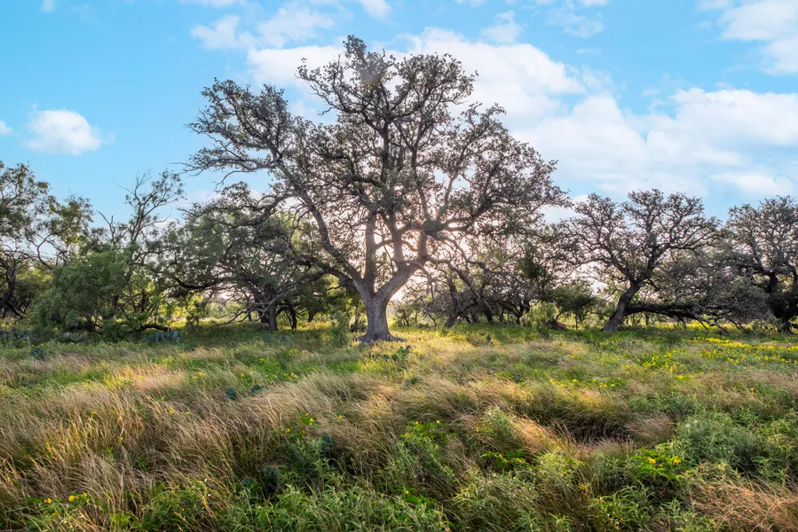 Redden Ranch spans 111 acres of oak-covered pastureland between Eden and Melvin, just off Highway 87. Majestic live oaks dominate the landscape, offering a dense canopy with lots of shade. Rolling elevation changes from front to back create ideal vantage points for wildlife spotting and hunting throughout the property.