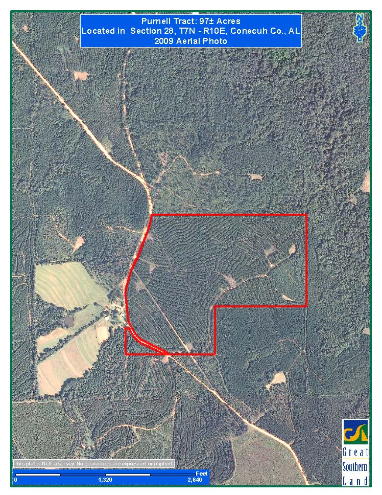 This +/-97-acre tract lies about a mile south of Fairnelson and is bisected by a county gravel road, with only a small part lying south of the road. The timber consists of a very good stand of 16-17 year old loblolly pine which has been recently thinned. Well-maintained woods roads provide easy access to the tract. A power line running through the tract provides game field sites. This is a very good timberland tract with excellent hunting. One half the subsurface mineral rights will be transferred upon a sale of the property.