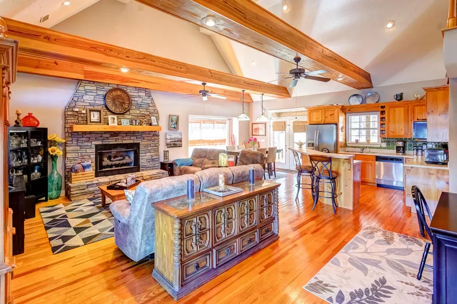 Looking for waterfront living? Then look no further than this comfortable home overlooking a private 35 acre stocked lake. A gas log fireplace and vaulted ceiling in the living room greet you upon entering the home. Exposed custom built pine beams and flooring throughout the house. Stainless steel appliances and gas stove cook top in the kitchen, tile shower with a jetted tub in the master bathroom, and a remarkable view from the back porch to enjoy family cookouts from. Located just 5 miles south of the City of Evergreen make it very convenient. If you have dreamed of living on the water then don't let this opportunity slip you by. Schedule your private showing today!