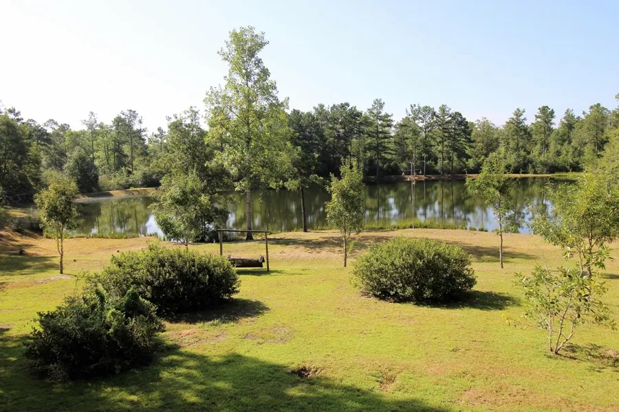 The camp offers some very relaxing views to enjoy. Swings overlooking the pond from an elevation coupled with the fire pit make an ideal setting for campfire stories with the kids. There is also a large porch overlooking the pond. A 2bd/2ba mobile home and a separate bunk house provide you with plenty of room to sleep comfortably at the days end. They are being left furnished with beds, appliances, and couches.