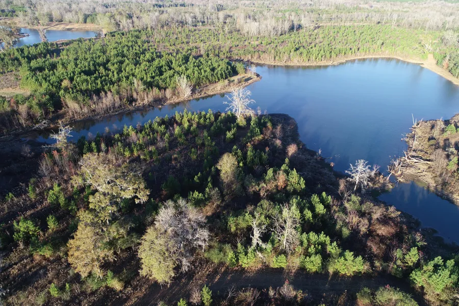 Approximately 700 acres of the tract consists of pre-merchantable loblolly pine plantations with the remainder being in hardwood along the bottoms, some recent clear cut, 33 acres of powerline right of way (much of which could be planted for wildlife), 23 acres of open game plots, 50 acres of open pasture and 34 acres in lakes/ponds.