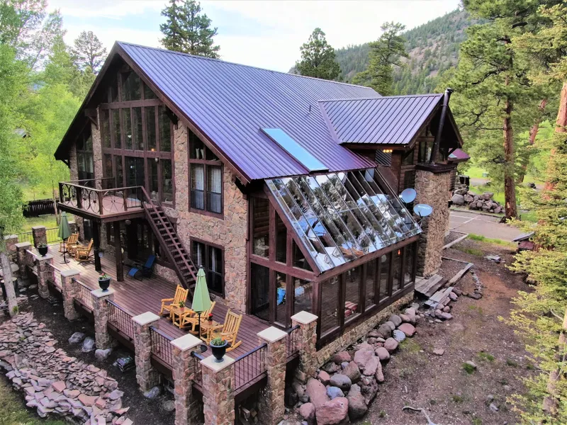 Resting on the banks of the Conejos River in South Central Colorado, this masterfully designed luxury home is located in a secure gated community. This property is a must-see as every detail was hand selected with an astonishing use of logs, timbers, beams, iron and stone that resemble the strength of the Rockies. Despite the spacious 7,400 sq ft, the home offers quaint and intimate spaces throughout.