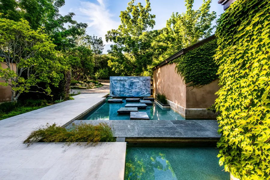 A masterpiece brought to life, this art collectors paradise is 13,757 square feet of top-end architecture conceived to highlight the original owners museum-worthy collection, accentuating its beauty with daring angles, luxurious materials, and pinnacle-level luxury. Tucked away behind a private gate and circular driveway, bold gestures prevail. A front courtyard with reflecting pool and fountains reveals the vine-covered faade. The stunning foyer with lofted hallways opens to a great room that partners with the huge stone outdoor patio. Dramatic display spaces include a grand gallery with marble staircase, wet bar and skylight, and the slightly more intimate sculpture gallery that abuts the regal salon. Enchanting grounds feature lush lawns, creekside trails, a fairytale bridge, even a bamboo forest. This isnt art imitating life, its the art of living life.