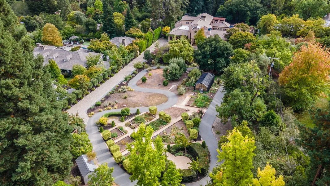 This retreat sits on a dual lot at the end of a private drive, a world away from life’s cares. The principal lot (3941 Happy Valley Road) is 2.3 acres, adjoining the undeveloped second lot (3943, .98 acre), now a garden, which can be preserved as open space or developed or sold separately. Entertain those of any age with a tennis court, basketball court, batting cage, swimming pool with waterfalls, slide, climbing wall, and water jets, golf simulator, putting green and bocce court. Relax in the massage room, two Jacuzzi spas (one in a covered grotto), hair salon, or by the outdoor fire pits, or enjoy a movie in the spacious professional theater with reclining seating. The home, with vaulted ceilings throughout, offers separate gathering areas. One melds the gourmet kitchen (with elite appliances), dining room, and spacious living room (with built-in 80” television and surround sound). Move to the other side of the house to the game room, equipped with six televisions and ample space to play pool, ping-pong, or cards. Wet bars are found on both sides of the house, and outdoor patios and terraces abound. The four bedrooms are spacious, and the luxurious primary suite offers a massive walk-in closet and an en-suite bath with every amenity. A detailed list of the property’s special features is available upon request.