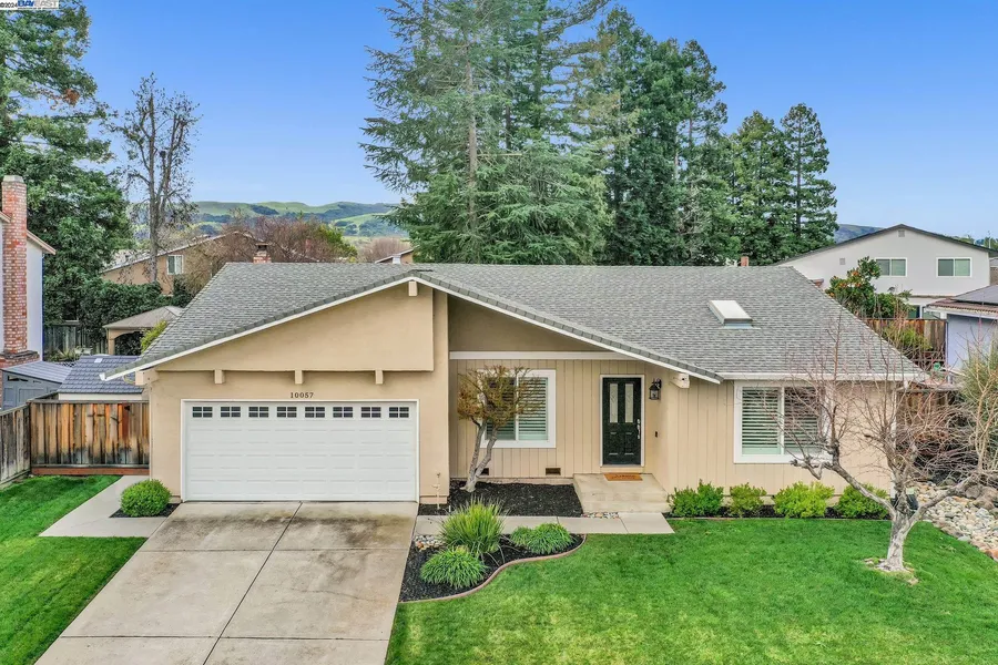 This is a real cutie in the heart of San Ramon. Single story nicely updated home with great location. Open kitchen/family room. Hardwood flooring throughout with carpet in bedrooms. Dual pane windows. Stamped concrete patio in backyard with grass area too. Built in backyard BBQ. Skylights in living room, guest bath & primary bath. Recessed lighting in living room, dining room, family room & kitchen. Ceiling fans in each bedroom. Crown molding & baseboards throughout. Sliding glass door out to backyard from first guest bedroom. Closet organizers in each bedroom. Primary bedroom with large walk-in closet w/closet organizer as well. Primary bath updates with two separate granite vanity sinks plus stall shower & skylight over shower. Kitchen includes updated cabinets, Newer stainless-steel appliances with Gas stove, Bay window looking out to backyard, solid granite countertops, sit-at peninsula open to family room. Brick fireplace in family room. Close to 12 years of top-rated SRVUSD schools and Iron Horse Trail. This is a good one :-)