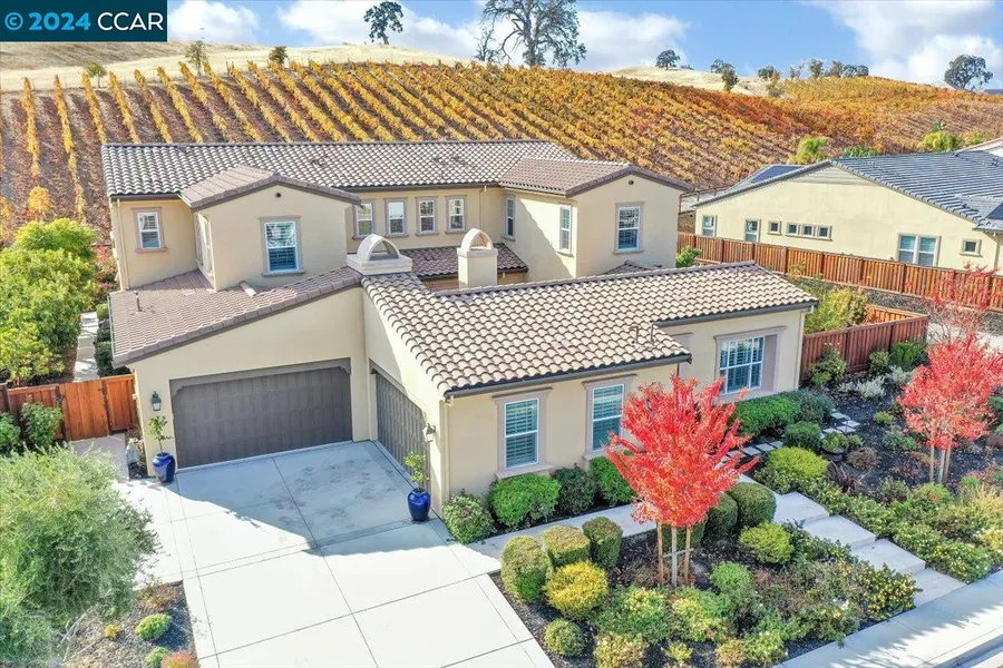 Experience unparalleled luxury in this exquisite Brentwood home. Facing NE and nestled in the gated Vista Dorado Community, it features stunning views of the vineyards. Boasting over $500k in upgrades, the Mediterranean Style estate defines opulence with its open-concept living. Immerse yourself in the tranquility of the backyard oasis featuring an expansive salt water pool adorned with fire bowls, three waterfalls, an infinity-edge jacuzzi, bubblers, and sun shelf. The retractable sliding doors seamlessly blend indoor and outdoor spaces, ideal for lavish entertaining. Spaces include a screened-in covered patio, 2 outdoor fireplaces, private covered balcony off the primary suite and an enclosed courtyard. Gorgeous chef's kitchen, w/stainless appliances, stunning countertops, 2 refrigerators, oversized island and butlers pantry. Wide plank hrdwood floors flow throughout, plantation shutters, wine storage/tasting area, office & loft/bonus area. Luxurious primary suite and bath has a spa feel w/large walk in shower and dual shower heads. Free standing tub offers views of the vineyards. A generational suite with separate entrance on the ground floor w/full kitchen and laundry facilities adds to the versatility. 4-car garage that's car charger ready, owned solar and 10 fruit trees.