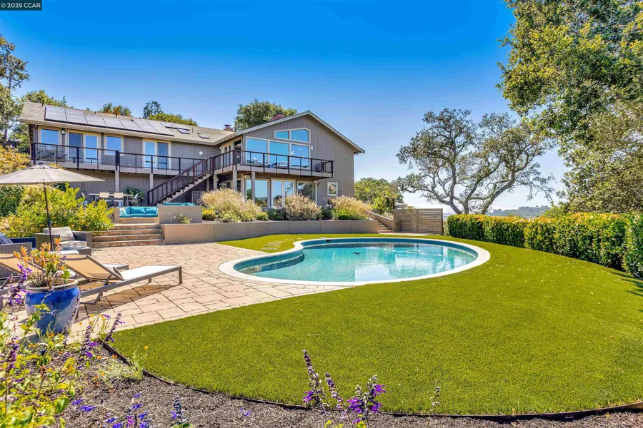 Imagine waking up to mesmerizing views of the sunrise over Mt. Diablo, while enjoying a specialty coffee from your built-in Miele Coffee machine or savoring sunsets over Tilden Park while enjoying a drink on your deck with views. This stunning contemporary home in an idyllic setting has captivating views at all times of the day. The pristine residence can live like a single-level home with 2 en-suite BRs, Plus the Primary Suite on the sunlit main level. The stunning hardwood floors flow throughout the generous living room, dining room, Laundry & Great Rooms. The kitchen is equipped with high-end Thermador appliances & 2 dishwashers. The versatile downstairs space includes the 4th BR, full BA, office space, kitchen area, expansive indoor storage & a 460-bottle wine cellar. Currently, the lower level works well as an entertaining center, pool house, WFH & workout area, with access to the p...