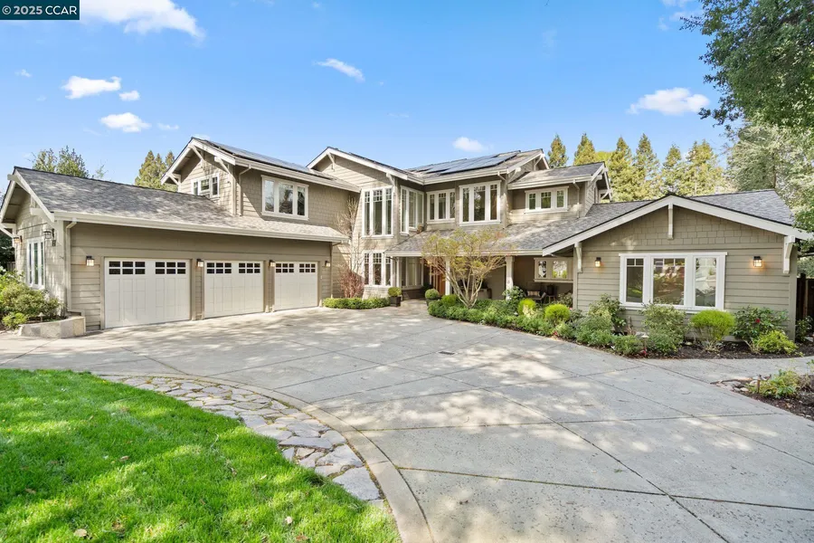 Just steps from the popular IRON HORSE TRAIL, this beautifully updated Craftsman-style estate sits on an iconic private lane in the heart of Westside Alamo. The flat, private lot is framed by majestic redwoods and designed for year-round enjoyment-with a sparkling pool, outdoor kitchen, sport court, and firepit lounge, perfect for entertaining or relaxing. Inside, soaring ceilings and abundant natural light enhance the spacious layout, featuring flexible living areas, a custom home office, private gym, and a luxurious primary suite. Includes FULLY OWNED SOLAR and is ideally located near top-rated SRV schools, scenic parks and hiking trails, and both downtown Alamo and Danville.