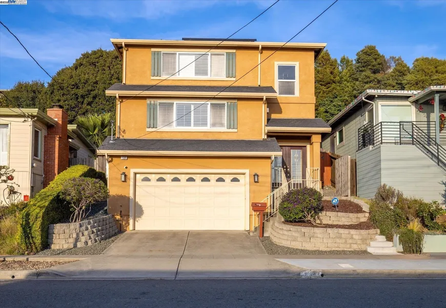 Custom built three-story home with skyline, bay, Golden Gate Bridge and Bay Bridge views. This property offers 3 bedrooms, 2.5 bathrooms and approximately 1,753 square feet of living space on a 5,439 square foot lot. The main level features open living and dining areas with a family room fireplace, hardwood flooring, abundant natural light and a convenient half bathroom. The kitchen is equipped with a breakfast bar, stainless steel appliances, granite counters and gas range. All three bedrooms are on the upper level along with two full bathrooms. Additional features include central air, solar and an attached side-by-side garage with interior access. The terraced and landscaped backyard offers a low-maintenance outdoor space. Located near the marina, parks, trails and commuter routes, this home combines impressive views with convenient access to local amenities.
