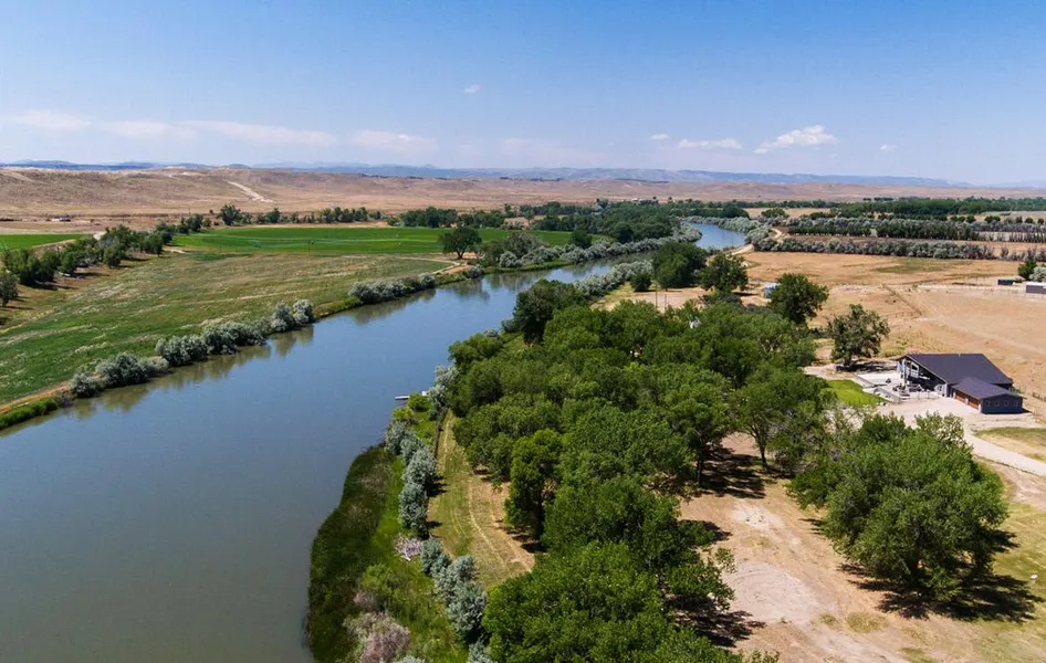 52 River Bridge Road is strategically located 10 miles northwest of Douglas, Wyoming. This beautiful custom home is nestled amongst mature cottonwood trees along the North Platte River with views and privacy, all on 7.97 deeded acres. The 6,404 sq. ft. residence was constructed in 2003 and was totally remodeled in 2014 to display a more modern and contemporary design. The expansive layout offers four bedrooms and four bathrooms, one of which is a master bedroom with plenty of living space. The home offers two family rooms and an office. The kitchen is sure to please with quartz countertops, double sinks, breakfast bar, custom hickory cabinets, double oven, whirlpool cooktop and a wine fridge. The home has large southern-facing windows which offer sweeping views of the North Platte River. The flooring is a combination of marble, granite and engineered hardwood flooring. The property features a 1,380 sq. ft. finished garage. The well-maintained exterior begins with stucco, insulated concrete forms, 50-year Malarky shingles, large paver patio with outdoor kitchen, and landscaped yard with sprinkler system. All of this in a tranquil setting to enjoy the surrounding nature and wildlife with paved year-round access. Residence is all electric with utility costs averaging $600/month.