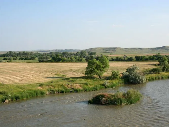FORT FETTERMAN RANCH Douglas, Converse County, Wyoming: Surrounding the historical Fort Fetterman State Park, this beautiful ranch consists of 1,902 deeded acres. With four miles of North Platte River frontage and over two miles of LaPrele Creek, the ranch has 400 acres of alfalfa hay meadows irrigated with two new river pump stations providing water to eight pivots and two side-roll sprinklers. The hay meadows historically produce over five tons of hay per acre annually. The ranch has an impressive set of improvements which include the 9,000 sq. ft. main house which features vaulted ceilings; beautiful moss rock fireplace in living room; large kitchen with custom-made cabinets and granite countertops; master bedroom suite; full basement with large great room; bar with appliances; two bedroom suites each with private baths; guest bath; and large library with built-in oak bookcases. ...