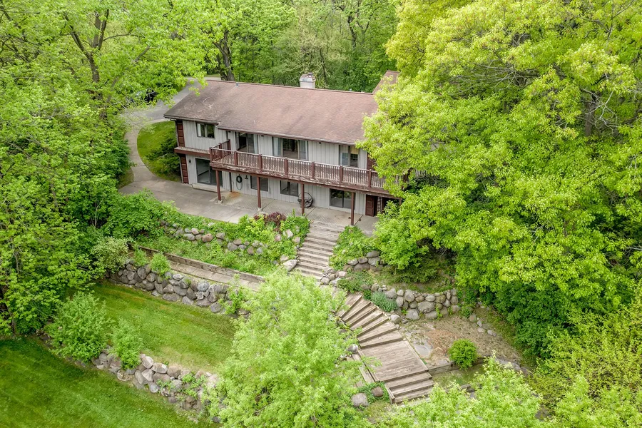 This inspiring home has views as expansive as your vision. First time offering this beautiful secluded setting in Barrington Hills. This 4 bedroom 3 full bath home is ready-to-rehab. Property offers all the benefits of a walk-out ranch including main-level open layout entertaining with first floor kitchen, dining room and living room with aesthetically pleasing sunken office featuring a stone fireplace, and two main-level bedrooms. Vaulted ceilings with wood beams and oversized windows dramatically enhance the vision in the living room overlooking the rolling hills of the backyard. The lower level features a grand family room with wet bar, a master suite with separate sitting room with fireplace, an additional bedroom, and laundry room. Easy access to Barrington Hills riding trails, minutes to town and Metra and award winning schools. This unique home is a private retreat awaiting ...
