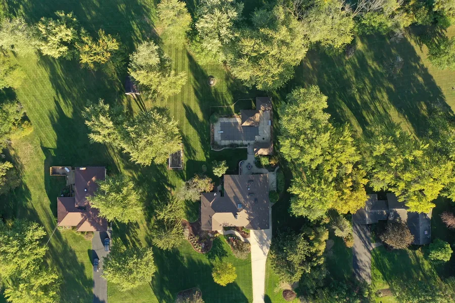 Yes, you're in the heart of Orland Park, but with being unincorporated, this amount of land, and the quiet tree-lined street, you may have to be reminded. Lush greens, mature landscaping, and a paver walkway welcome you to this gorgeous 3 bedroom, 2.5 bathroom custom ranch home with walkout basement. Warm greetings ensured with a bright living room featuring a sun filled bay window and a wood burning fireplace flanked by lit, built-ins. Dining area adjacent to the kitchen is united by a large wrap around peninsula with cooktop, cabinetry, and seating for 3. A culinary delight, with massive skylight brightening the endless cabinets, stainless appliances, including a double oven and planner's desk. Great site lines for entertaining too, with a pass thru to the family room. Did you peep that vaulted ceiling with soaring windows? The solid white oak floors? And those skylights that enhance the stone fireplace? Talk about the ideal family retreat. A perfect floor plan with 2 bedrooms on one side and the privacy of a master a world away. Add the spa inspired bathroom with oversized luxury shower, dual sinks, and separate vanity area! Pumped up pampering for sure! Full basement for expansion or storage with a finished craft room that is sure to inspire! Exterior backyard access make this a great related living option as well. On over an acre, there is plenty of space for entertaining. Add a paver patio, fenced in-ground pool with cement surround and diving board and your backyard is "lit"! Take a dip and dry off in the sunk-in tiki bar or screened-in room. Even mudroom access from the backdoor slider for storing your towels, etc. You're going to love this unique home and it's convenience to all of Orland's award winning schools and amenities!