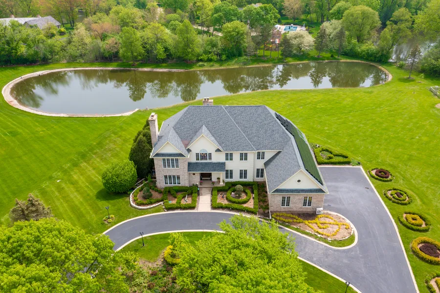 All you can dream of in a luxury home is right here!! Live the lakefront lifestyle on a private 2.55-acre land with private lake which could be viewed from every room in the prestigious South Barrington community. The entire home is powered by newly installed solar panels. You pay ZERO for electricity consumption! The landscape has plenty of curated evergreens and every pattern has its own meaning: "Goal", "Wealth", "Health", "High Note", and "Love" that are postcard worthy. The moment you walk into this majestic estate you'll be amazed by the grand foyer, sweeping bridal staircase, gleaming hardwood floor, 2-story family room with elegant enormous crystal chandelier. Huge windows on 3 sides of the room open to the picturesque view. 30' high ceiling is vaulted with stoned fireplace. A massive kitchen with big island, breakfast area, wet bar, and open to the delightful sun-drenched sittin...