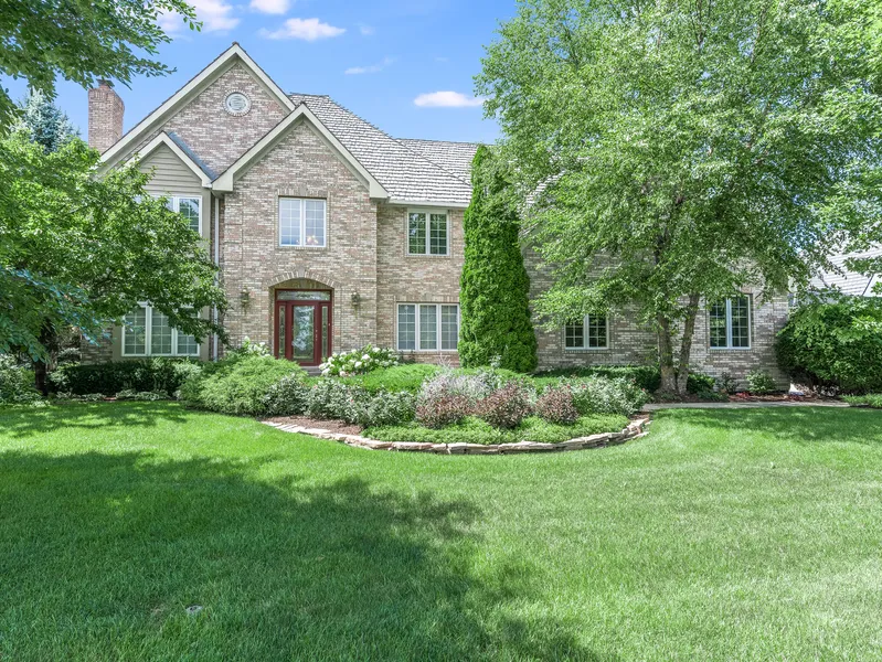 Beautiful and functional East facing home in the gated golf course community of Ruffled Feathers is a must see! With 4 bedrooms & 4.5 baths, a formal dining room, and two additional bonus rooms, there is plenty of room to spread out, work from home, entertain, relax, and play. The open layout gourmet kitchen, equipped with granite countertops, island, double oven, and stainless steel high-end appliances, is perfect for preparing and serving meals. The pantry and built-in beverage bar provide additional storage space. The large primary bedroom suite, complete with two large walk-in closets and private balcony for retreat and a comfortable spot to unwind. Additional features of this lovely home include a second bedroom suite, jack & Jill bedrooms, vaulted ceiling in primary bedroom & breakfast room, double-tray ceiling in dining room, crown molding, coffered ceiling in office, dramatic entry staircase, 3-car garage with added storage, oversized laundry room/mud room and 2 large decks overlooking the 6th hole on the Ruffled Feathers Golf Course and perfect to catch an evening sunset over the pond. The home offers possible 5th or 6th bedroom options on both 1st floor and basement level, the professionally landscaped backyard offers tons of space for kids or pets to play or take in the peaceful fountain with butterfly garden, the tranquil backdrop with extra privacy for relaxing is just amazing.