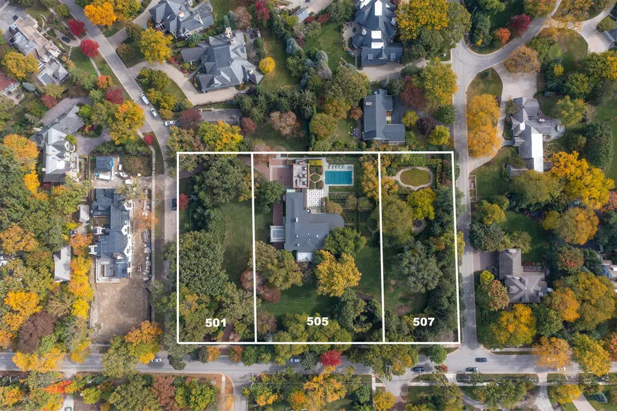 Introducing a rare piece of history: The crowning glory of Hinsdale, this historic estate, has graced South County Line Road for over 100 years. Elegantly ensconced in an English garden setting amid mature trees and lush manicured grounds, the over 13,000-square-foot mansion (including the lower level) has a provenance that includes many of the movers and shakers of their era. The 1900-era mansion was originally designed by Joseph Corson Llewellyn, a prominent Chicago architect who studied under Rev Nathan C. Ricker. It has since undergone several restorations and architectural transformations over the decades. Today, the ivy-covered brick and columned exterior mostly reflects the guiding elegance of the Georgian Revival style - a favored architectural tradition of revered Chicago architect David Adler, who redesigned the home in the early 20th century. Adler's reverence for symmetry, balance, and proportion is expressed by classical porticoes, the introduction of uniform and handsomely proportioned Georgian-style sashes and a pedimented and fan-lit doorcase found at the main entrance. The mansion's main living spaces also pay homage to Adler's vision for a grand English-style country estate. An L-shaped plan reveals a grand reception room, a dramatic oval dining room at its center with an adjacent smaller dining room, spacious sitting room, formal living room with fireplace, a lattice room, a bowed sunroom extending from the south gable and a striking paneled library decorated with antique pine brought from England. Rich details and antiques - from a richly carved 18th-century chimneypiece over the mantel in the dining room to extraordinary millwork, dentil moldings, and wood inlay floors throughout - marry with intimate and relaxed spaces that create an atmosphere of warmth that make this a perfect family home. Six bedrooms, including a sumptuous primary wing appointed with a fireplace, sitting room, walk-in closet, and a hotel-worthy bath reside upstairs. At the basement level, an entire entertainment center exists with a bowling alley, billiard room, sitting room, dining room, kitchen as well as staff accommodation, and storage. Front and back staircases connect all levels. An in-ground pool surrounded by magical park-like gardens and fountains exist beyond the main residence, further setting the stage for private resort-inspired living and entertaining that can be enjoyed by multiple generations. Breathtaking in its depth of design, history, and pedigree, this estate is comprised of three total parcels along County Line Road bringing the total legacy offering to 2.76 acres. This parcel, 505 South County Line is situated on a 200x300 lot - 1.38 acres - amid mature trees and lush manicured grounds. Or purchase all three lots together which comprises the entire estate from Woodside to 6th Street - 2.76 acres - for $8,597,000. The story of this iconic estate lives on... with its next owner and steward. Write your next chapter. House is being sold AS-IS.