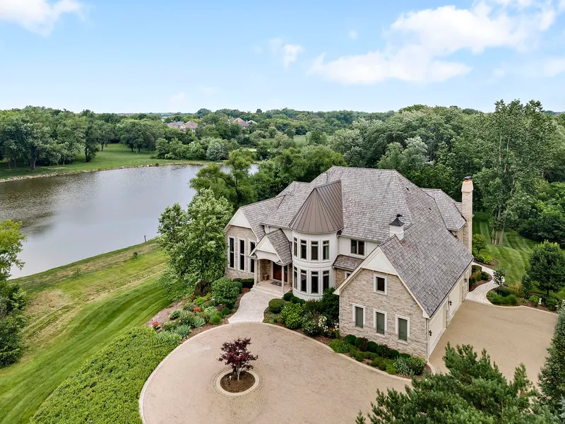 Welcome to this exceptional Barrington Hills Estate. Amazing custom built home by Harris Builders in 2014 and sited on the best lot in Abbey Woods. With your very own private pond, overlooking a second larger pond for simply spectacular and tremendous views. A circular, paver driveway welcomes you to this custom-designed masterpiece situated on 1.7 acres. Uncompromising, quality construction and interior designer decor including superb high-end finishes throughout, this is the best of the best. Gorgeous marble flooring with custom inlays and high-end chandeliers with electric lifts. A minimum 10' ceilings on main level and 8-foot mahogany doors with exquisite millwork throughout. Desirable radiant heat flooring on main floor, 2nd floor bathrooms and walk-out lower level. Designer lighting, silk draperies, motorized shades, wallpaper accents, central vacuum, lighted niches and stunning cu...