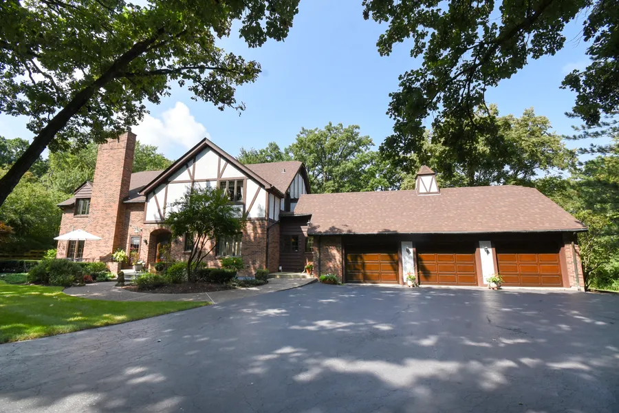 Welcome to Tampier Estate. This magnificent property has never before been presented to the public. Nestled within the tranquil confines of Palos Parks Tampier region, the home stands as a timeless testament to Tudor architecture, meticulously designed by acclaimed architect Phillip Peecher and Associates. This distinguished residence showcases a harmonious blend of red brick, stucco, and half-timbering, accentuated by rough sewn western red cedar trim on dormers, bump outs, and soffits. Situated on an expansive 1.5-acre wooded lot graced with waterfront views, this property offers unparalleled serenity and privacy. Outdoor living is elevated with a redwood deck featuring a gas-powered grill, an enchanting railroad tie side garden, and a screened porch constructed in redwood for flooring, trim, and ceiling enclosed with copper screens affording panoramic views of the sprawling backyard and adjacent forest preserve. Step inside to discover a residence that exudes sophistication and grace. Spanning nearly 5,000 square feet across the upper levels of the home, there is no shortage of space. The grand foyer welcomes you with opulent marble flooring, setting the stage for the library entirely adorned with rosewood. The living room invites warmth with a natural gas fireplace, adorned with French doors that open onto a meticulously laid bluestone terrace. Culinary enthusiasts will delight in the kitchen complemented by a bay window alcove offering sweeping vistas of the deck and lake. Upstairs, the primary suite serves as a private retreat with dual sinks, a luxurious separate shower and soaking tub, a built-in makeup vanity, and a skylight bathing the space in natural light. The four additional upper-level bedrooms feature charming windows framing picturesque lake views, custom-built California Closets, and bespoke storage solutions. Entertainment awaits in the lower level, where a well-appointed game room beckons with a natural gas fireplace, English Pub-style finishes adorned with ornate wainscoting, a wine cellar perfect for housing your prized collection and additional bedroom and bathroom. Practical conveniences include a recently replaced roof (April 2020), state-of-the-art Lenox air conditioners (June 2024), dual American Standard furnaces, a new AO Smith 75-gallon natural gas water heater, and a reliable Coleman Powermate stationary standby electric generator ensuring uninterrupted comfort throughout the seasons. Meticulously maintained and thoughtfully designed, Tampier Estate seamlessly merges classic elegance with contemporary comfort, offering a rare opportunity to own a distinctive residence in Palos Park. Welcome home.