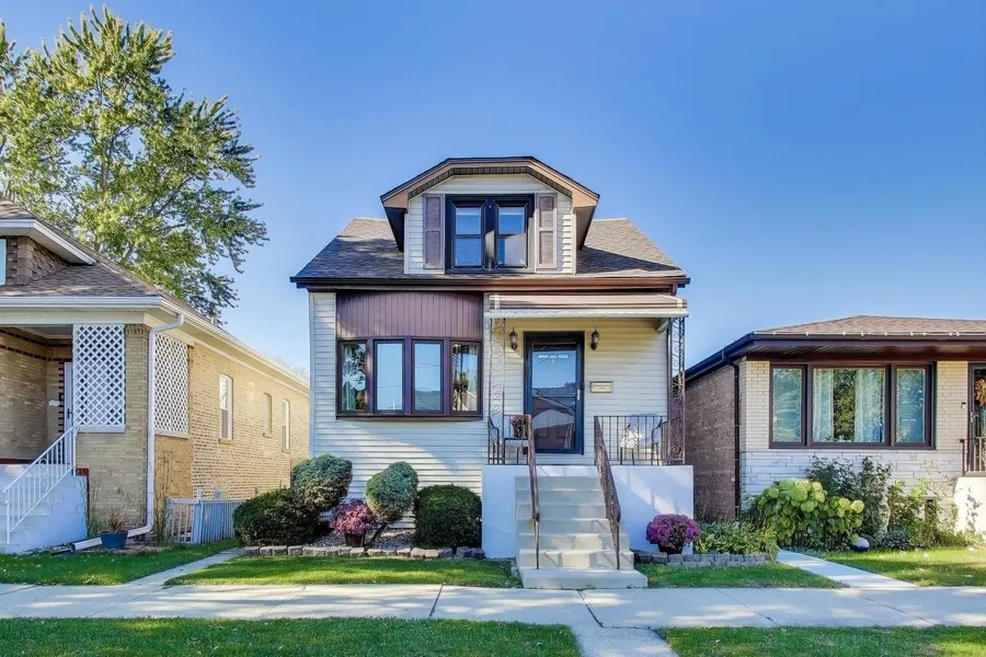 Welcome home! Nestled in the highly sought-after Dunning neighborhood, known for its top-rated schools, parks, and community charm, this stunning two-story A-Frame residence offers 4 bedrooms plus an office, 2 full bathrooms, a finished basement, and a backyard built for entertaining. Step inside to discover a thoughtfully designed floor plan featuring gleaming hardwood floors and abundant natural light throughout. As you approach, you'll be captivated by the home's classic curb appeal and welcoming front foyer, which opens to a spacious living room that seamlessly flows into a formal dining room-perfect for hosting gatherings around an 8-seat table. The sun-filled kitchen is equipped with stainless steel appliances, while the main level also includes a full bath with a tub/shower combo and a convenient first-floor bedroom. Upstairs, you'll find three inviting bedrooms, including a primary suite complete with an updated en-suite bathroom featuring a walk-in shower and single vanity. The fully finished basement offers incredible versatility with ample storage, workshop area, a laundry closet (with side-by-side washer and dryer plus utility sink), an office or potential guest room, and a spacious recreation or family room-ideal for relaxing or entertaining. Outside, enjoy beautifully landscaped grounds with a fire pit area and a covered cabana, perfect for year-round enjoyment. This meticulously maintained home features dual-zone HVAC for optimal comfort and efficiency. Don't miss your chance to make this exceptional property your new home and experience the perfect blend of comfort, style, and functionality.