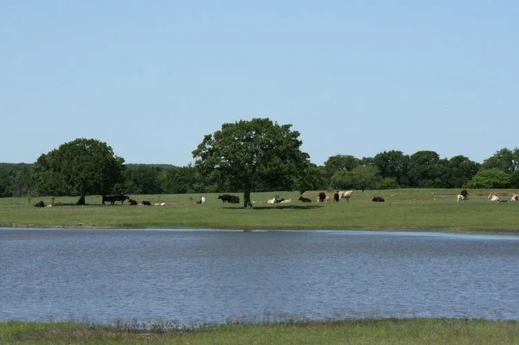 Adjoining Corps of Engineer land leading to Lake Ray Roberts, it offers breathtaking views of scenic rolling hay producing coastal pastures with scattered oak trees, a picturesque fishing lake, several ponds, sections of heavy timber, sandy loam soil, a deep water well, a diversity of wildlife including deer, a workshop and a 4 bedroom double-wide for weekend retreats.
