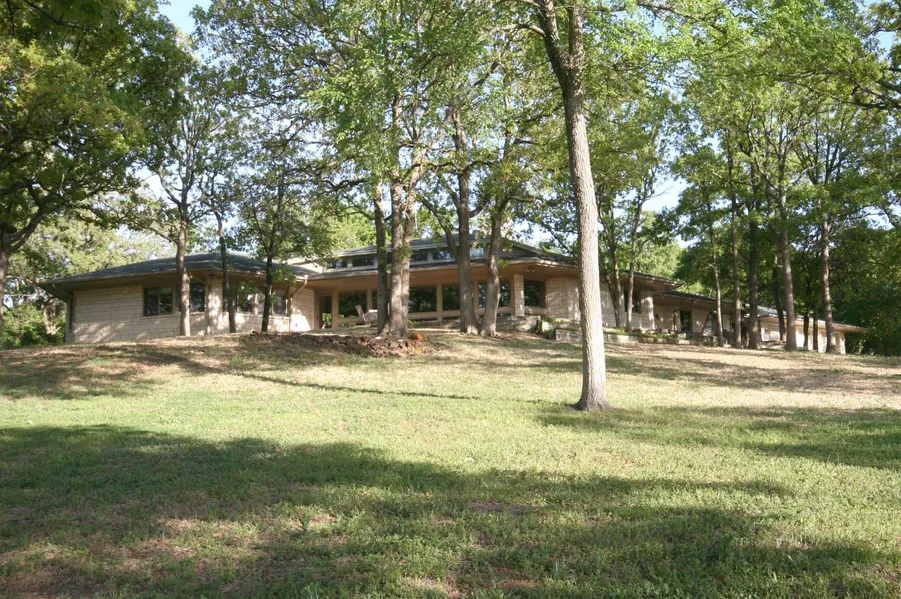As you pass through a gated entrance, youll follow a long, winding paved drive to the top of a high hill, where the home sits privately in a quiet, partially-wooded setting. With miles of dramatic views that go all the way to Muenster (probably 20 miles away), this beautiful custom Austin stone home is positioned to take full advantage of its elevated location. Its single-story design with luxurious details offers over 3,700 square feet of interior living space that includes a large living room, with a wall of oversized windows and wood-burning fireplace, sharing an open floor-plan with the dining area and nicely accessorized kitchen. There are 4 spacious bedrooms, 3.5 baths, a fully equipped media room and a 16x18 screened in sitting area with a fireplace adjoining the home to its oversized 3-car garage.