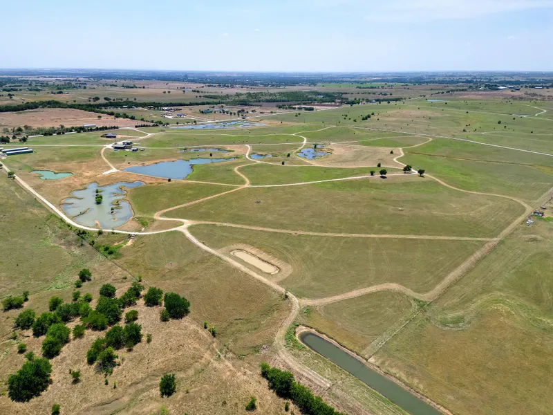 Breathtaking views from these 100.27 acres with many ponds, water features and extensive hard service roads. 1 BR 1 bath Barndominium with an open concept living room, dining room and kitchen. Detached mancave. Also on property is a 3 bedroom 2 bath mobile home with covered parking. Property is fenced. Property is just minutes from I-35 and Denton. Wonderful development-investor opportunity here.
