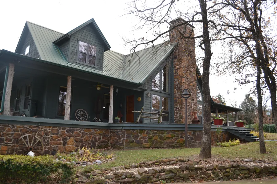 Welcome to your mountain ranch retreat in Valley View. The gated entrance brings you through beautiful oak trees winding over a custom rock bridge to this amazing regal estate. This custom home is filled with unique features such as custom pine woodwork, stone wood burning fireplace with gas starter, large upstairs game room and two private office areas. Vaulted pine ceilings stretch over 25' in the living area with wood burning fireplace and large bay windows overlooking the property. Custom granite and tile throughout the kitchen and first floor with walk-in pantry and plenty of cabinet space. Storage abounds with two barns-one 40x46 and one 20x34-both with full concrete slabs and electricity.