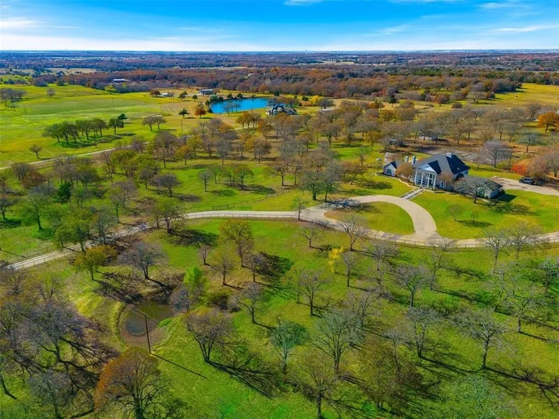 Welcome to your private oasis! This exquisite property is a stunning blend of modern sophistication and serene luxury. Nestled on an expansive 18.81 acres, this fully updated residence offers a lifestyle of elegance and comfort, featuring a heated pool, spa, and tennis court—all just minutes from the picturesque Lake Ray Roberts. Step inside to discover a lavish master suite designed for ultimate relaxation, complete with a freestanding soaking tub, walk-in shower, marble vanities, and his and her closets, as well as a cozy wood-burning fireplace. The heart of this home is the sleek, stylish chef's kitchen, adorned with granite countertops and state-of-the-art built-in appliances. This culinary haven seamlessly flows into the beautifully appointed living area, which also boasts a wood-burning fireplace, a dedicated office space, and access to a serene private rear patio.