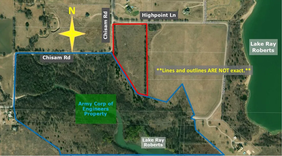 Research Parcel InformationFrom Denton, Go N on I-35 * Take the #483 Exit, Lone Oak Rd (FM 3002) * Go East 3 Miles * Turn RT on Chisam Road * Corner of Chisam Rd & Highpoint Lane * Road Frontage on 2 Sides