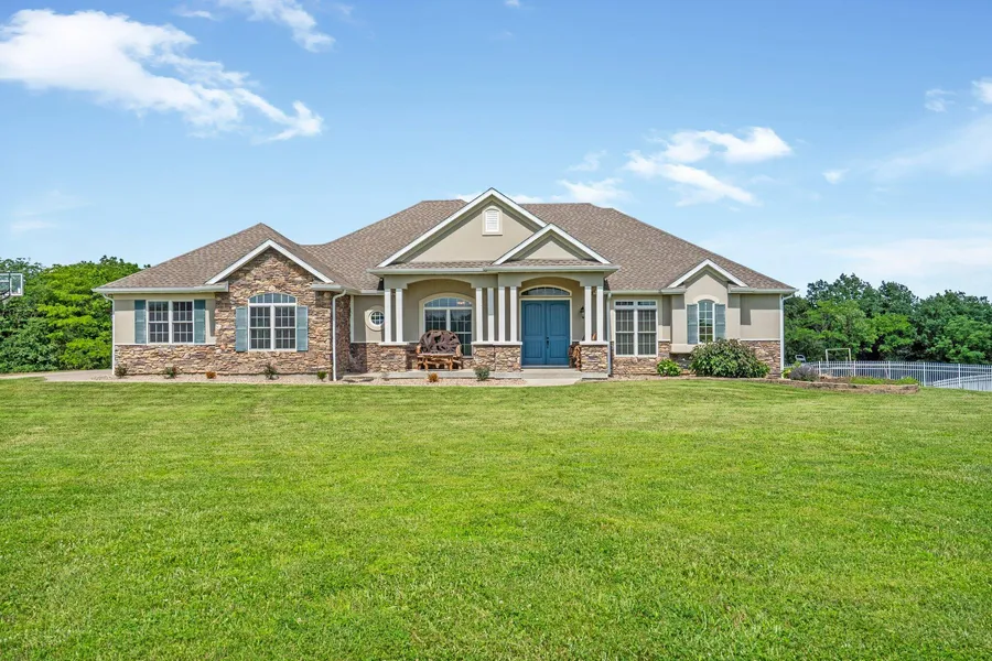 This stunning estate sits on nearly 14 acres and provides all the space to spread out! Upon entry you are greeted by a stunning window wall with beautiful views. The timeless kitchen with breakfast bar and large pantry will have you making memories for years to come. This home has 4 bedrooms and flexibility for a 5th bedroom in the office in addition to 3 full bathrooms and a half bath. Multiple living areas including a theater room, wetbar, and bonus space in the basement. The fenced yard provides plenty of space for kids or pets to run. Most of the acreage is wooded and provides hunting grounds in your own backyard! And, if you still don't have enough space, there's over 1700 SF of unfinished storage space to put your stamp on! Quick access to I-70! Don't miss this rare opportunity!
