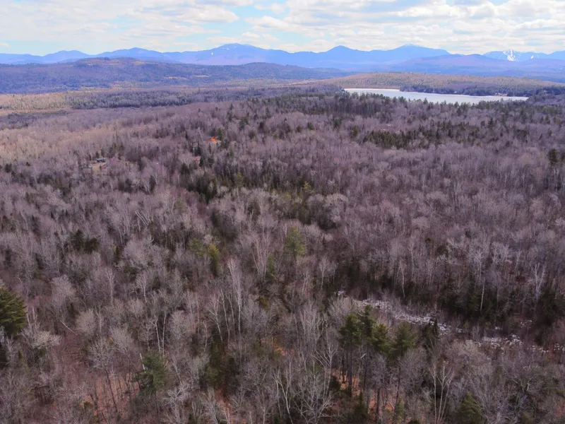 To view, using a 4WD vehicle proceed to the beginning of the right-of-way at 44.360682, -71.669349, then proceed north on foot 500 feet to 44.361920, -71.670616. There is no For Sale sign however the northeast and southeast corners are marked approximately with red flagging tape for visibility, and also precisely marked by a surveyor with orange tree blazes.