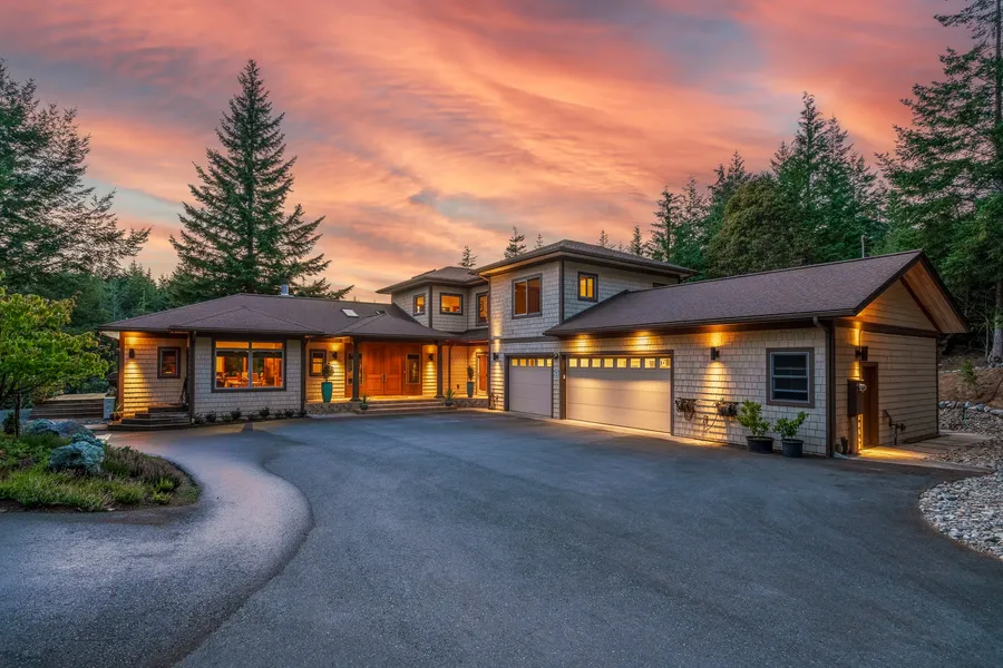 Leave the World Behind in this Luxurious Country Estate. Situated in a forested upscale residential area, minutes from Bandon's Old Town, the beach and Bandon Dunes, this stunning 4BDR/3.5BA home is a serene space, with every amenity you could wish for. Relax with friends and family on the warmer east side of town, perfect for outdoor entertaining. This well designed 4,055 square foot contemporary home has an open, spacious layout, with windows everywhere for plenty of natural light. There are teak floors and vaulted cedar ceilings. The gourmet kitchen has everything you need and more. The primary bedroom suite is on the first floor with an office nearby. Three guest rooms are upstairs. The very best finishings were chosen throughout. The garage is oversized with room for three vehicles, and there are two detached shops with plenty of room for storage. Everything is in immaculate conditi...