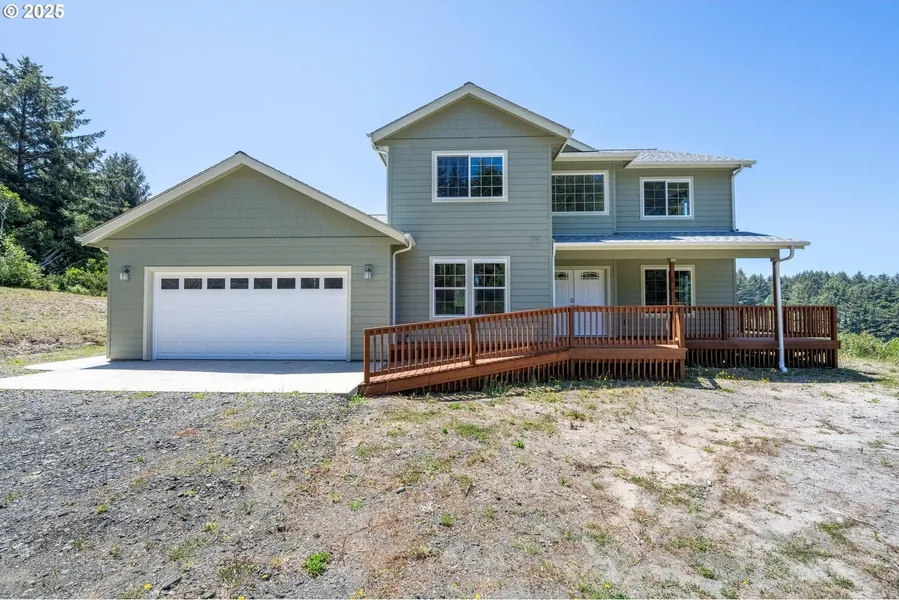 Brand-New Coastal Retreat on Bastendorf Beach Road - Nearly 3,000 Sq Ft on 3.58 AcresDon't miss this rare opportunity to own a brand-new home just a quarter mile from the sands of Bastendorf Beach. Set along Bastendorf Beach Road-where only five homes share this coveted address-this never-lived-in property offers nearly 3,000 square feet of thoughtfully designed living space, all situated on 3.58 acres spanning two tax lots. The spacious layout features four bedrooms and two and a half bathrooms. The primary suite is conveniently located on the main level, while the upper floor boasts three additional bedrooms, a full bath, and a versatile bonus area perfect for a home office, reading nook, or library. Enjoy modern comfort with a heat pump system, and savor the coastal ambiance from the expansive wrap-around covered deck. A ramp leads to the front entry, providing enhanced accessibility for residents and guests alike. Beyond the home itself, the property offers enticing possibilities, including the potential for a second home site thanks to its generous acreage and dual tax lots. The grounds remain ready for your vision, with landscaping yet to be completed, allowing you to create your own coastal oasis. Whether you're looking for a serene primary residence, a beachside getaway, or a property with development potential, this Bastendorf Beach gem combines new construction, prime location, and future opportunity in one exceptional offering.