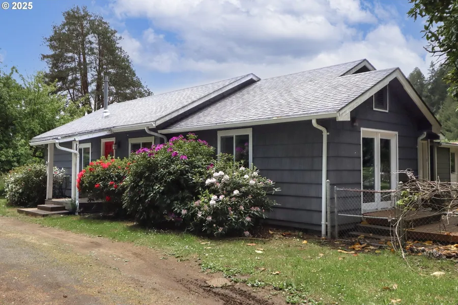 SHORT SALE! PRICED FOR ACTION! This one-of-a-kind property spans both sides of Fairview Road and includes a scenic slice of the Coquille River—your own piece of Oregon paradise. Step into a welcoming ranch-style home featuring: New flooring throughout, Cozy living room with a propane fireplace and oversized picture window, Charming dining nook with a large view window off the galley-style kitchen, Spacious primary suite with walk-in closet, private bath, and direct outdoor access, Second bedroom with outdoor access and standard closet. Additional highlights: Generous mudroom with built-in storage, folding counter, and exterior access, Expansive deck shaded by a mature Magnolia tree—perfect for entertaining or relaxing in nature, Flat, usable land and pasture—ideal for horses, livestock, or hobby farming, 40x24 barn/shop, fruit trees, RV parking, and room to expand with additional outbuildings, Semi-circle driveway adds curb appeal and easy access. This peaceful retreat offers space, versatility, and natural beauty—ready to become your personal haven. Awesome Opportunity - as deals like this don’t come often!
