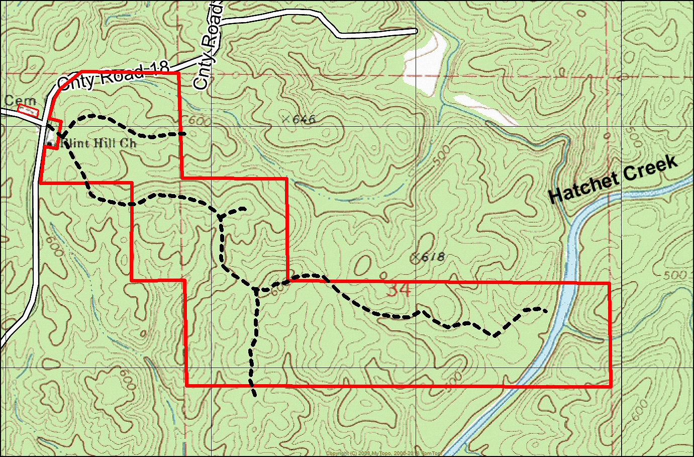 From the intersection of US Hwy 280 and US Hwy 231 go 11.6 miles south on US Hwy 231 towards Rockford to Co. Rd. 59. Take a right and go 1.2 miles to Co. Rd. 34. Take a right and go 3.5 miles to Co. Rd 18. Take a left and go 1.9 miles to the property and the access road on the left. Look for the Cyprus Partners sign. You are welcome to look on your own or you can set up an appointment. There are no gates that must be opened. The woods road into the property is located at Lat: 325629.95 N. Lon: 861623.99 W.