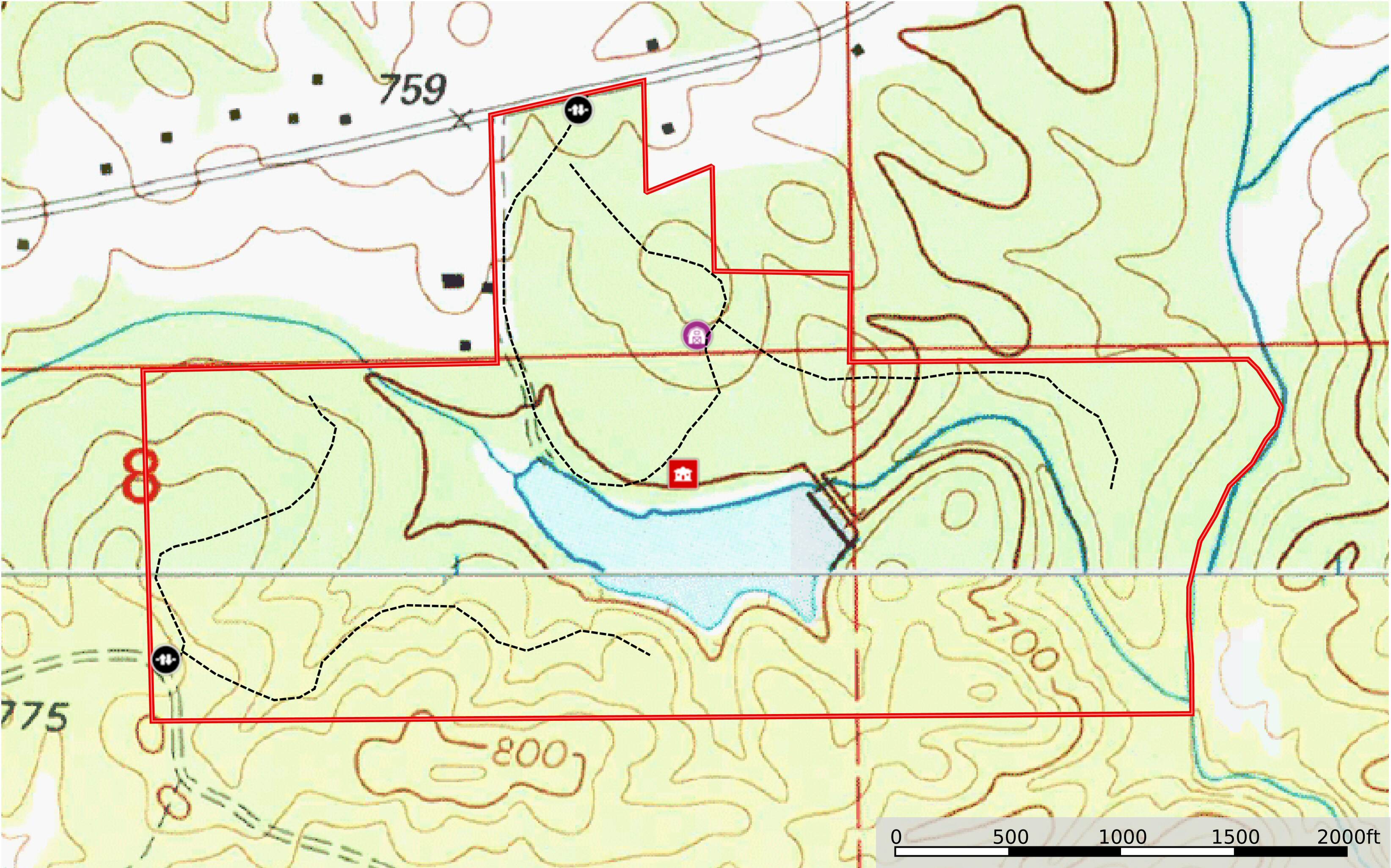 The lake was built sometime between 1960 and 1967 before government permitting for lake construction was required. There are no known problems with the dam or its hardware. The lake is stocked and actively managed by the owner. The property fronts for mile on Mill Creek