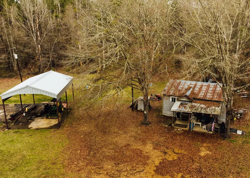 At the front of the property sits an older, well-maintained 1,000 square foot camp featuring two bedrooms and one bathroom. Just outside the camp is a 20' x 30' metal pole barn on a concrete slab, currently used for equipment storage but could easily be enclosed to provide additional living or storage space. In the front yard, you will find a pond that is a year-round kid favorite!