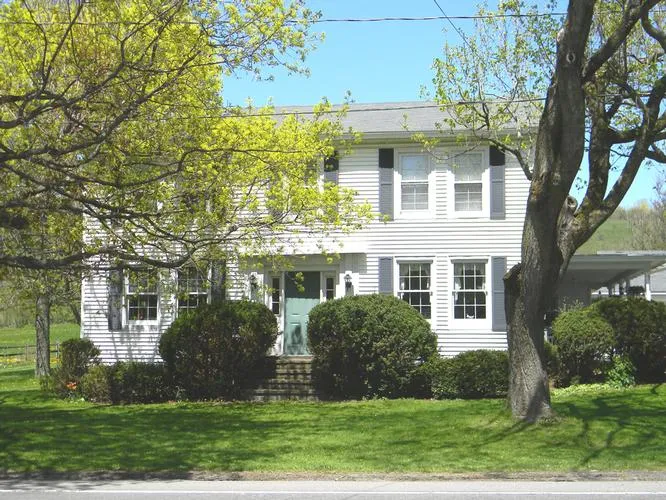Well-maintained colonial style country home with blacktop circular driveway includes 2+- acres in a great location just outside of the Village of McGraw, close to the City of Cortland and the Rte 81 corridor. The original home was built in the early 1800's and includes 3 upstairs bedrooms with a full bath. The downstairs includes a living room, family room, dining room and office / sitting area. An addition built about 1990 includes a large quality eat-in kitchen with cathedral ceiling, full bath and laundry / mud room. There is a covered porch on the one side and large treated deck area on the back. A covered breezeway connects the house to a 2 stall garage. The house has been updated outside with vinyl siding, Marvin Windows downstairs and insulated vinyl windows upstairs. A newer forced air natural gas furnace heats the 1st floor and electric baseboard services the 2nd floor. All kitchen appliances and washer / dryer are included. There is also a small single family house included in a private setting for rental income or to be used for guests. It includes 2 bedrooms, bathroom, living room and eat-in kitchen with appliances and covered porch. The land includes farmland and pasture for growing your own crops and raising livestock. Additional acreage available. On the market for the 1st time in 20 years this exceptional property located in the McGraw School District is offered at $229,900. Call NY Land Quest 877-257-0617 for more information and to schedule a private showing.
