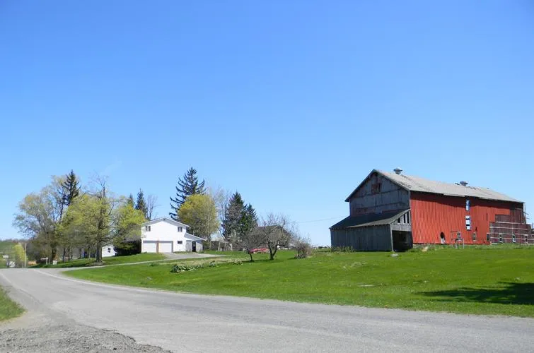 2 houses, barns, farmland, pasture with pond on 47+ acres with incredible views and bordering a NYS Forest. The 2 story main house with recent updates is on a full basement with attached 2 stall garage includes on the 1st floor a large country kitchen with breakfast room, dining room, sunken living room with gas fireplace, family room, half bath and mud room / laundry room. The 2nd floor includes 4 large bedrooms and one full bath. Internet service and TV available with satellite dish. Large garden area and apple trees completes the country setting. The 2nd house on a full basement with an attached one stall garage is a 3 bedroom one bath ranch style house with living room, large eat-in kitchen, mud room / laundry room, front porch area and rear deck. Both houses are move-in ready condition. Perfect property for the large family and in-laws or use the 2nd house for rental income. Both ho...