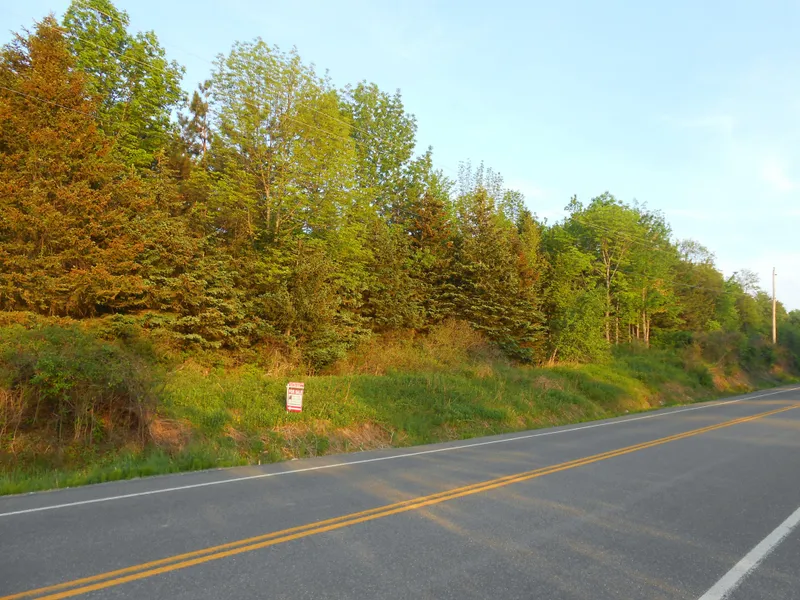 A screen of mature evergreens offers loads of privacy on 380+ ft. of road frontage, the perfect place to install a hidden driveway that leads to your new home or camp, tucked away from the hustle. Electric service is available right at the corner.