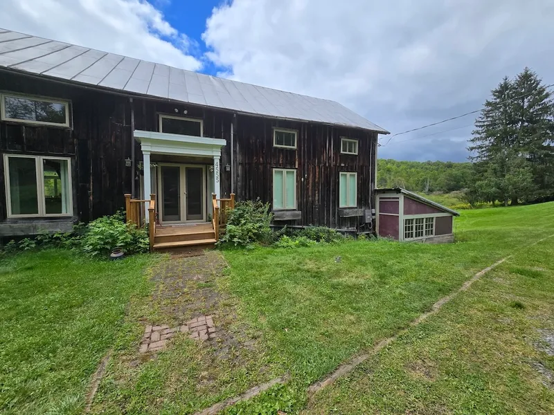 A perfect mix of antique and modern awaits in this beautiful late 1800s barn conversion with its open layout and country chic designed by a professional architect. The sun-filled, open layout includes many original hand-hewn beams and gorgeous floors made from locally sourced pine, blue stone at the entries, additional antique relics, and hand-crafted features throughout (see the hay pulley system in the peak of the cathedral ceilings. Great meals are waiting to be made in the high-end kitchen with granite counters, blonde maple shaker cabinets, and stainless steel appliances. There are 3 bedrooms and 3 full-sized bathrooms: two ample-sized bedrooms are located on the main floor, each with its full bath, and a huge primary bedroom is in the loft with its ensuite bathroom. Sliding glass doors in the living area and one bedroom both lead to a large deck off the back of the house, overlooki...