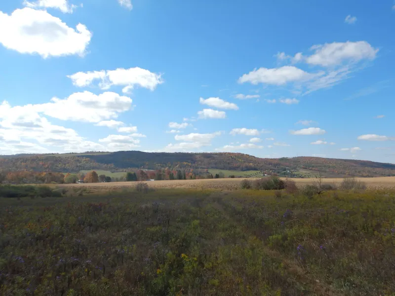 New York land with woods, agriculture fields, views and adjoins State Forest for sale. This property is located on Stillwell road which is paved and fully maintained. There is approximately 1,600’ of road frontage and electric is available at the road front with a farm lane that will lead you through the fields and to your potential next home or camp with beautiful views across the valley!This property has an excellent mix of cover types through the gently rolling tillable acreage. There are four golden rod fields totaling 20 acres that can be easily converted back to crops or food plots. There are two separate corn fields the larger being 37 acres near the road and the smaller “hidden” field being 10 acres. The southern 35-acre field is currently hay but has been corn in the past. The agriculture lease on the property generates $3,000 annually but can be broken at any time.The wooded a...