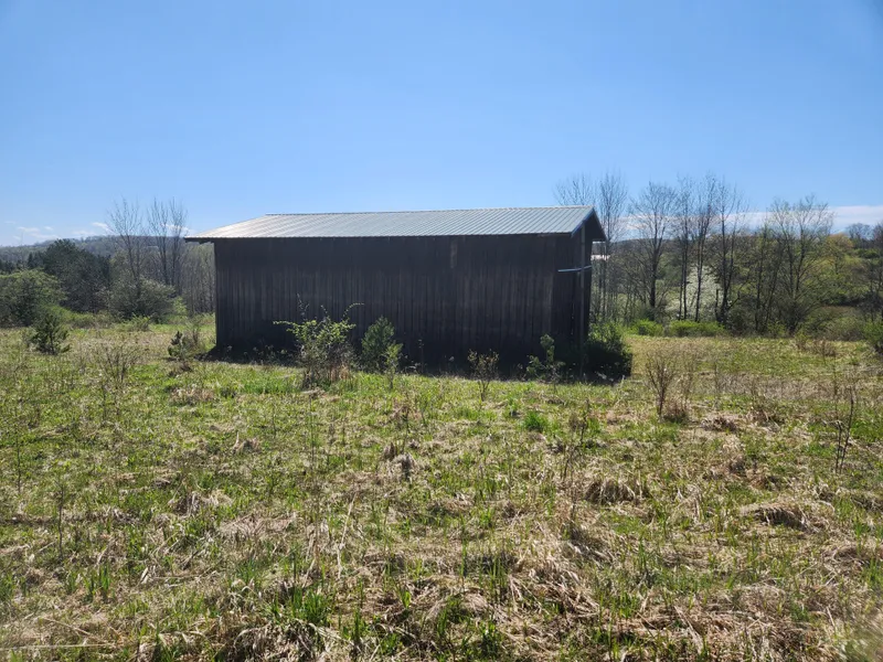 Property has a mixture of open land and some woods. Property has a good amount of road frontage. Located in a rural area with maintained roads. Barn has a partial dirt floor and some with stone. Barn is tall and will store equipment.