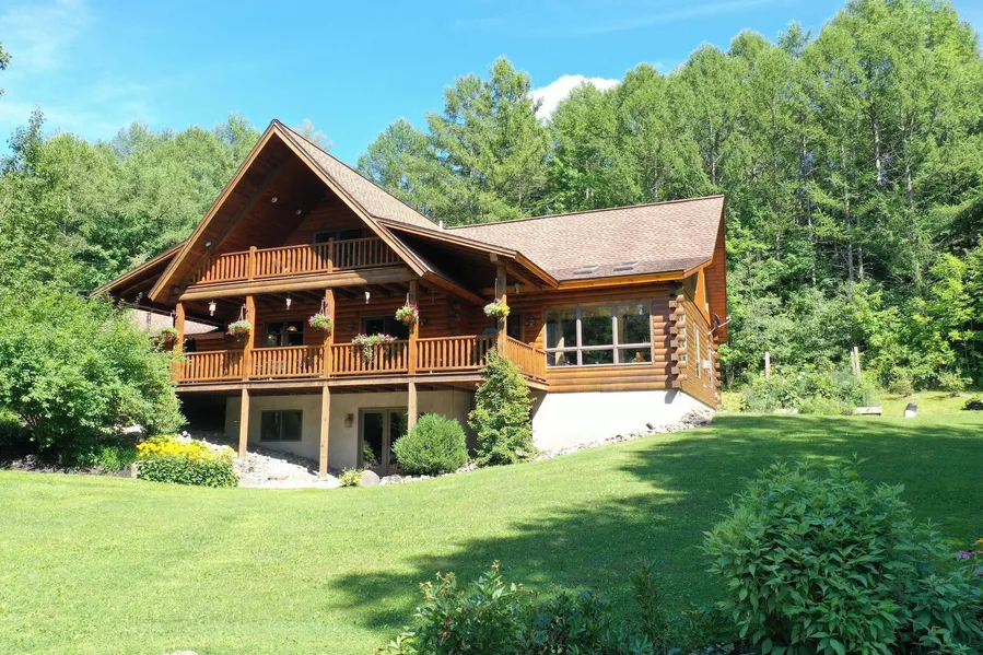 PRICE REDUCED!!! STUNNING: one word to describe this elegant log home within its private 120-acre wildlife sanctuary. Quality constructed with high-end appliances and finishes, the home is immaculate inside and out and features a light-filled, spacious kitchen with granite counters, custom planed hardwood floors, a huge great room – featuring a vaulted ceiling and fireplace utilizing locally sourced stones and leading to a large porch overlooking a stocked pond in a beautifully landscaped serene setting. Throughout the home, the custom craftwork and attention to detail is readily apparent with many additional features adding to an overall feel of relaxed luxury: spacious master bedroom with its private covered balcony, jetted tub with chandelier in the main bathroom, sauna in the finished, walkout basement which also has a family rec room, work out area, and office down to the custom...